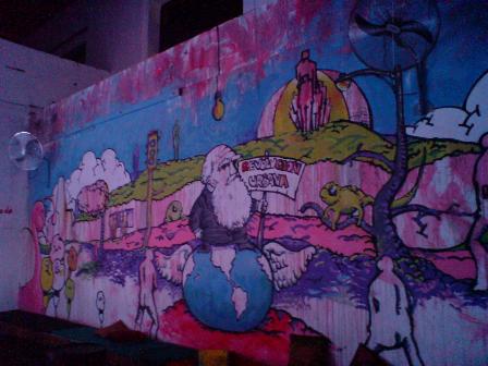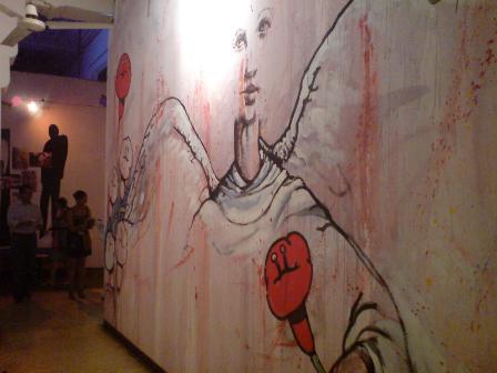 Here are some shots from La Casona. I was so happy to finally take some pictures from inside. The wonderful high ceilings of the art deco building they are at now makes such a great spot for alternative theatre or movie… but it is hard to photograph! We where there to see the theatre play Karaoke Sentimental, a play by Teatro Lagartija. They also had the art show 7 Pinceles, with fun paintings by Rolando de Sedas, Marta Noemi and Marta Sanchez, among others.