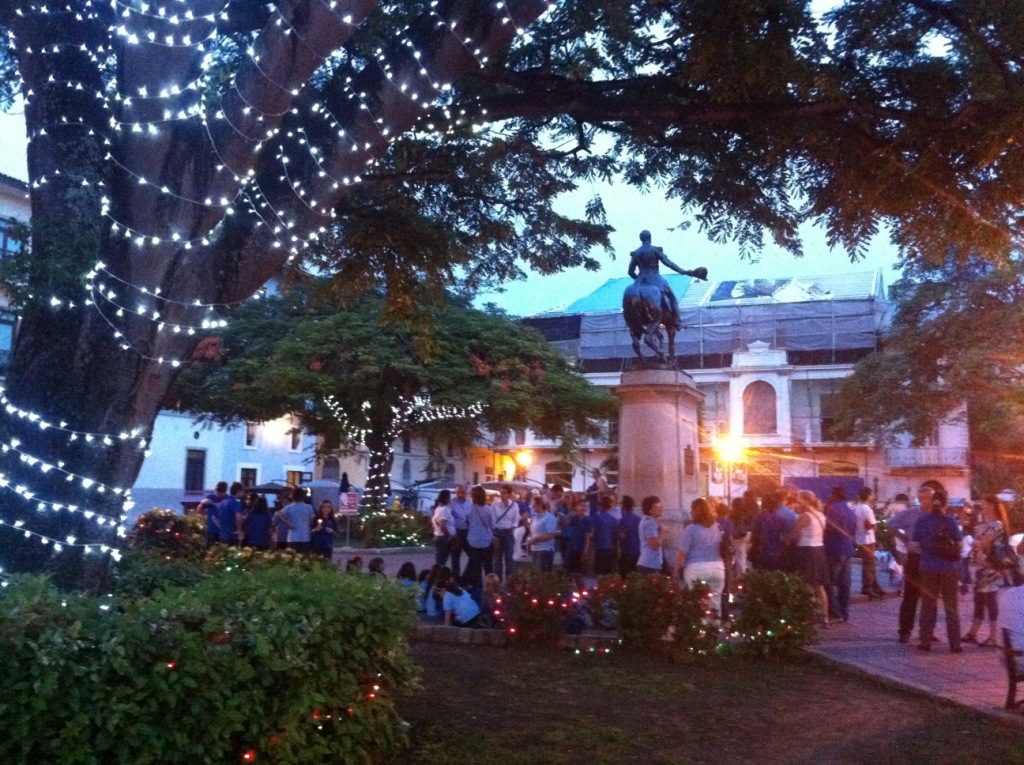 Last night was the lightning of Casco Viejo`s Christmas Tree at Plaza Francia. The group of parents and children walked singing from Plaza Herrera all the way to the point of the peninsula. This event will be followed by  Carols by Candlelight on Saturday, a beautiful outdoors concert at Plaza Francia featuring professional groups like Opera Panama and school groups. Starting at 7 p.m.! don´t miss it!
