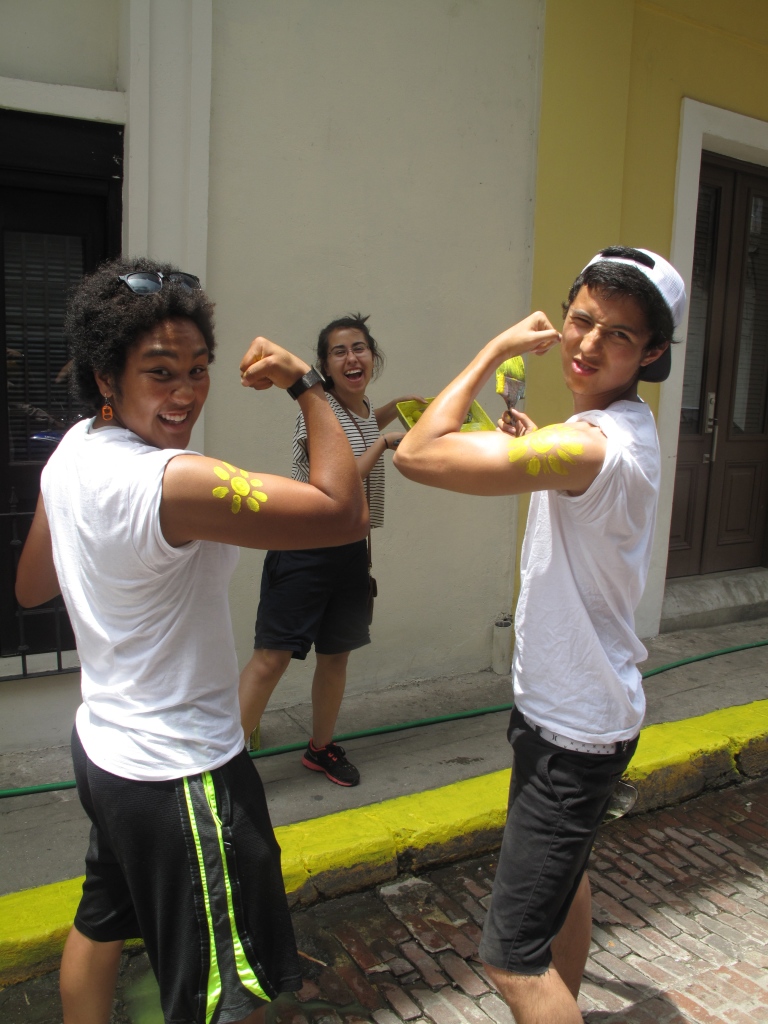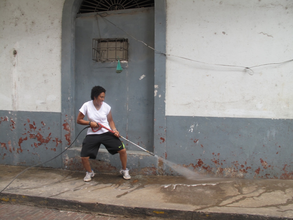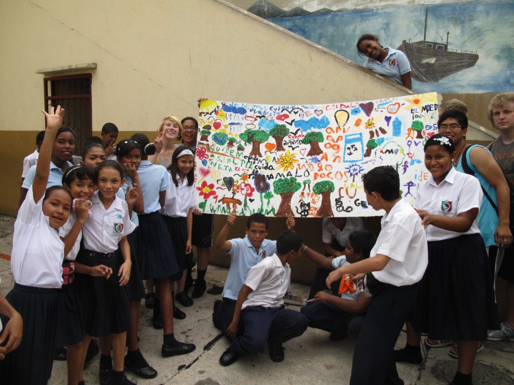 To educate takes time, specially if it involves changing habits! However challenging, the best way to go about it is with fun stuff.  For a bit more than a week, volunteers from Generation Peace Academy (USA) and AVACA had been leading an educational campaign to raise awareness about garbage. They`ve painted tanks and murals with children at school, cleaned streets, talked to neighbors one on one, and patrolled with kids from APROJUSAN every afternoon, each day with a different message ranging from individual responsibility to recycling.