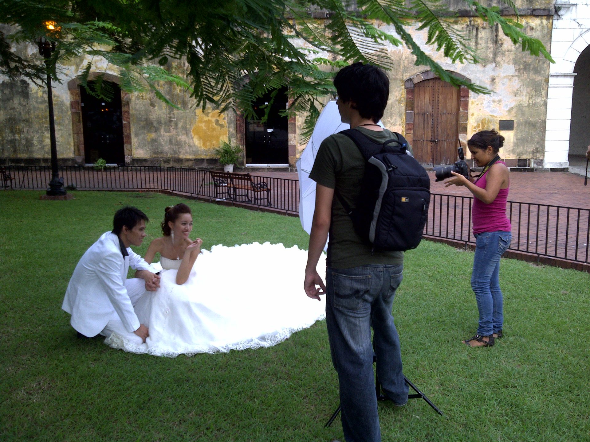 Yesterday I was running to Las Clementinas in Casco Viejo to meet a client. So I was walking “full speed ahead”, but as rushed as I was I used two micro seconds to take this photo: a girl modeling with her white dress in the middle of Plaza Catedral.