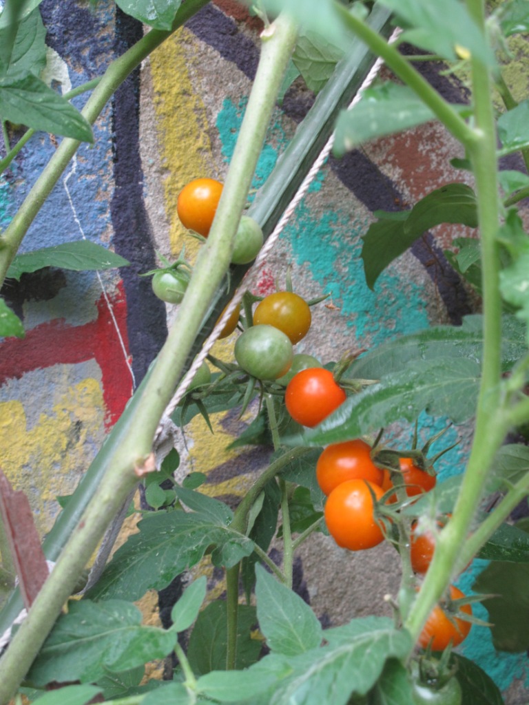 Rainy day, I went to check on the tomatoes… and guess what? they are already here! the cherry tomatoes were ready to go, the others are still green but growing. Fantastic!